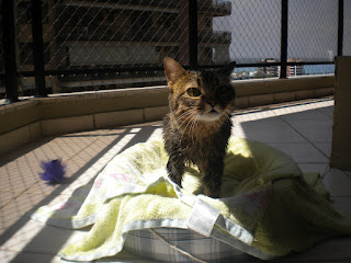 Na primeira viagem de outubro, levei a Chloe comigo. Ficamos uma semana na casa do meu pai e achei que ela fosse estranhar bastante. Após umas 2 horas, cheirando e fazendo o reconhecimento do local, Chloe estava totalmente ambientada! Para mim, foi uma experiência bem interessante. E repetirei, caso seja necessário. Ela viajou quietinha, não reclamou, não enjoou. Foi um exemplo de bons modos! E ainda se divertiu: viu passarinhos pela janela do quarto e fez os "clic-clic"´s pela primeira vez para um sabiá! Quanta diversão!