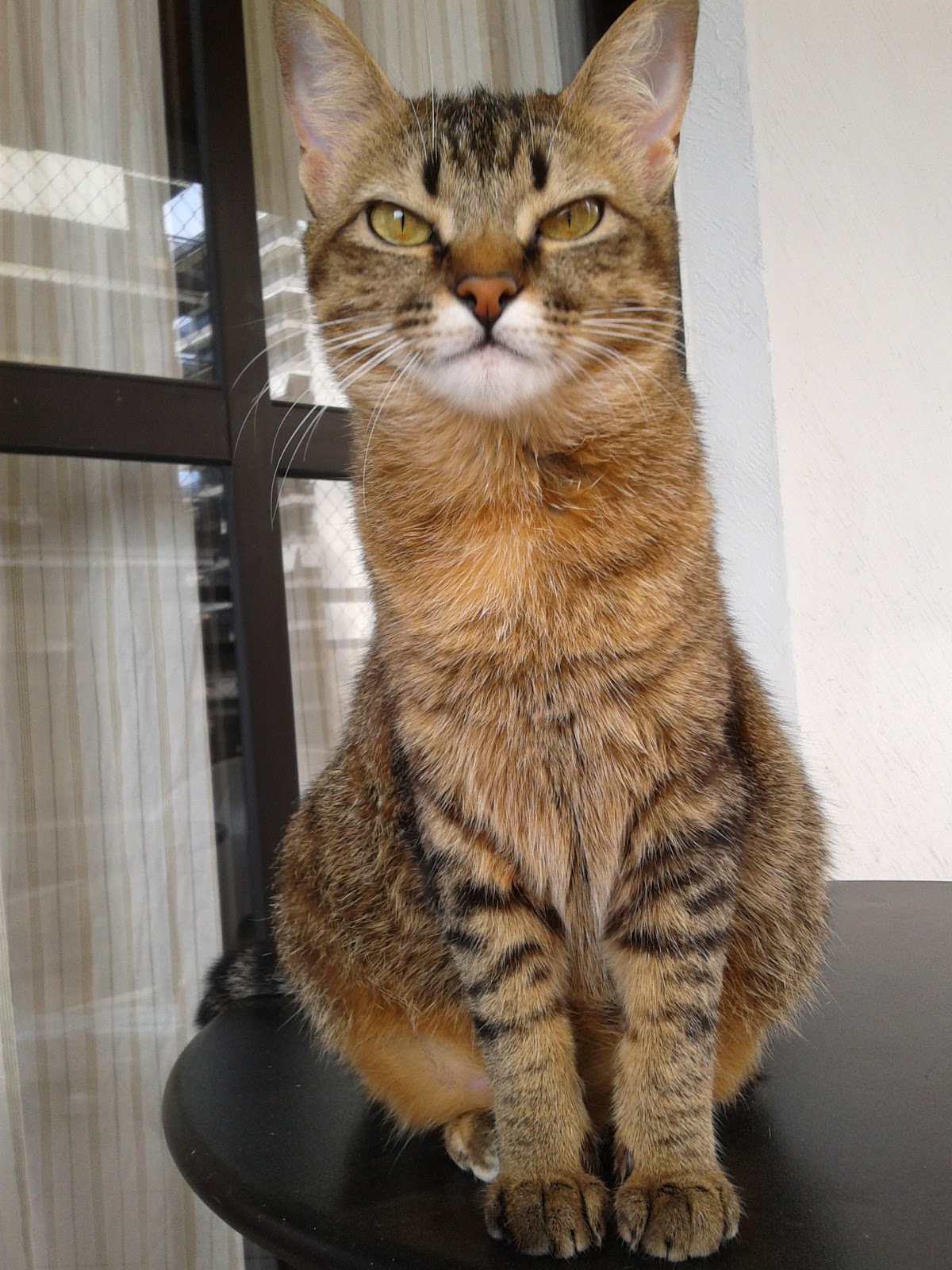 3 - O comportamento da Chloe mudou bastante nos últimos meses. Antes, ela subia na gente o tempo todo! Era para ver TV, para tirar cochilo, até no ombro do meu marido ela já sentou, como se fosse um papagaio. Hoje, ela não gosta muito de ser pegada. Ela prefere sentar ao nosso lado no sofá, mas não no nosso colo. E se for para ir ao colo, ela é quem decide. Não adianta a pegarmos que ela sai correndo e vai sentar no chão. Muito rebelde, essa gatinha! rs