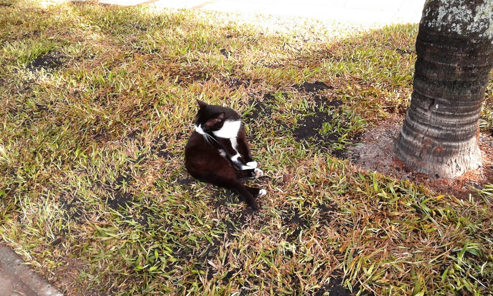 O prédio onde moro fica numa área residencial que ainda preserva um pouco de vida nativa, como siris, garças, aves diversas, capivaras (que estão sempre pastando em frente ao meu prédio) e gambás. Mas um outro tipo de animal também vive no local... adivinhem qual? Gatos! Sim, gatinhos!!!