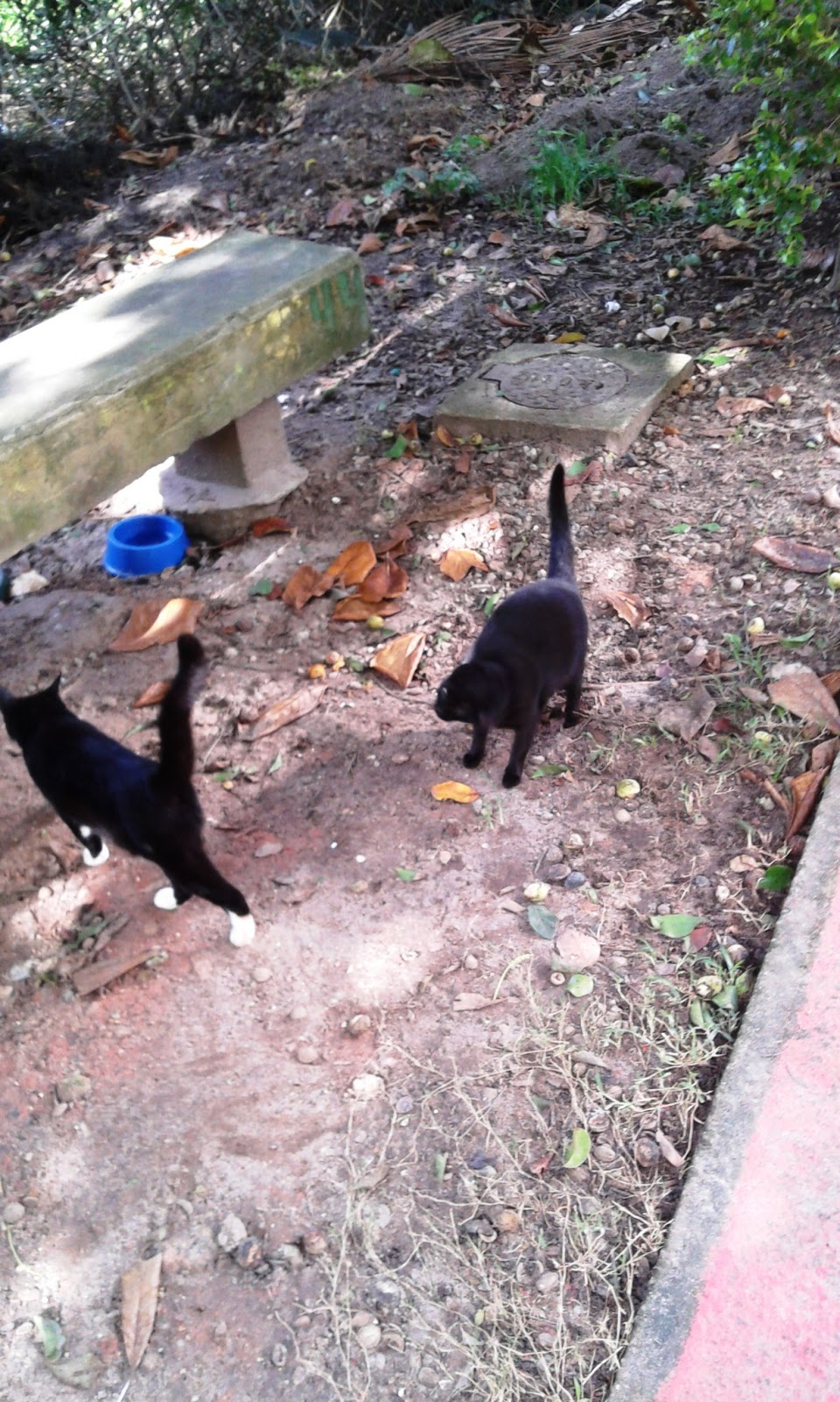 Existe uma colônia de gatos que vive na redondeza. Mas, não se preocupem. Estes gatinhos não estão largados à própria sorte. Diariamente, eles são cuidados por voluntários que fornecem comida, água limpa, atenção e carinho. Sem contar que, como eles moram à beira de uma via pública, também recebem afofadas dos próprios moradores, que por ali passam, inclusive, minhas!
