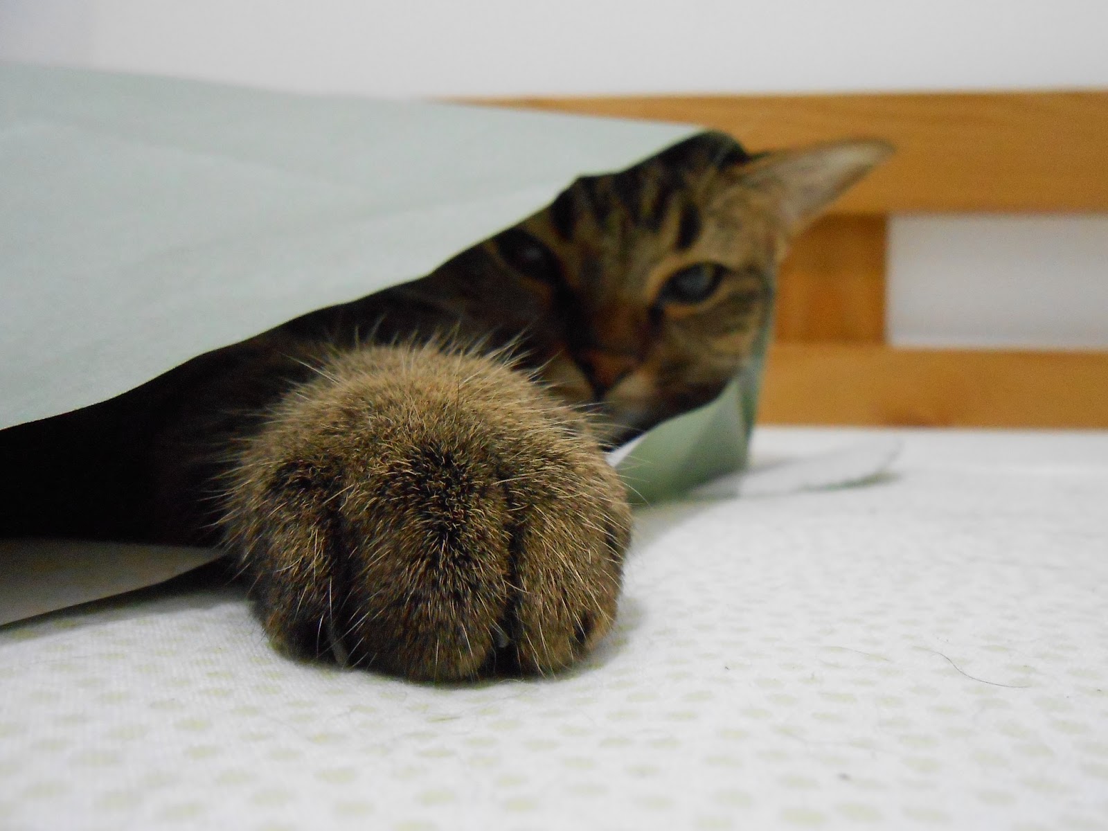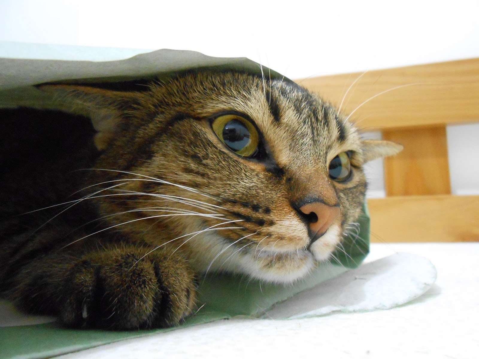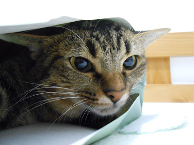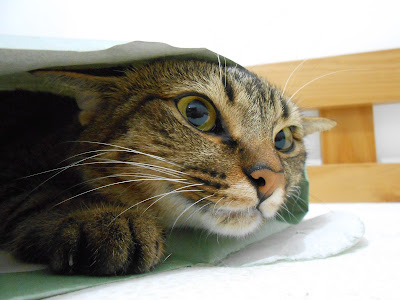 Gatos e suas sacolas...aqui em casa é impossível arrumar uma mala, uma bolsa, com os gatos por perto. Tudo vira festa! :)
